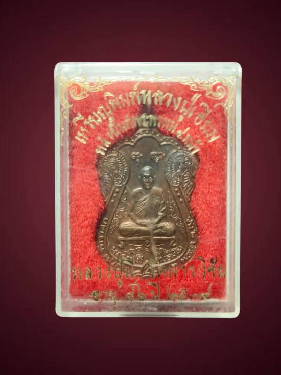 เหรียญหลวงปู่มี วัดมารวิชัย ปี 2539 พิมพ์หลวงปู่เอี่ยม วัดหนังหลังยันต์พรหมสี่หน้า เนื้อนวะโลหะ พร้อมกล่องเดิม |