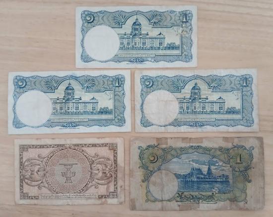 ธนบัตร 1 บาท รวม 5 ฉบับ