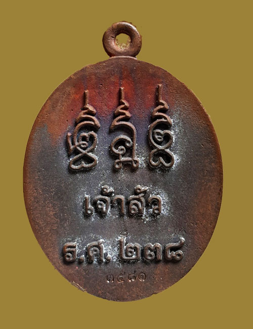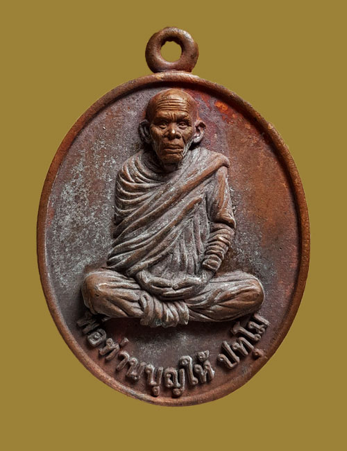 เหรียญหล่อโบราณรุ่นแรก รุ่นเจ้าสัว พ่อท่านบุญให้ วัดท่าม่วง จ. นครศรีธรรมราชเนื้อทองแดงเถื่อนโบราณ เลข ๓๕๘๑
