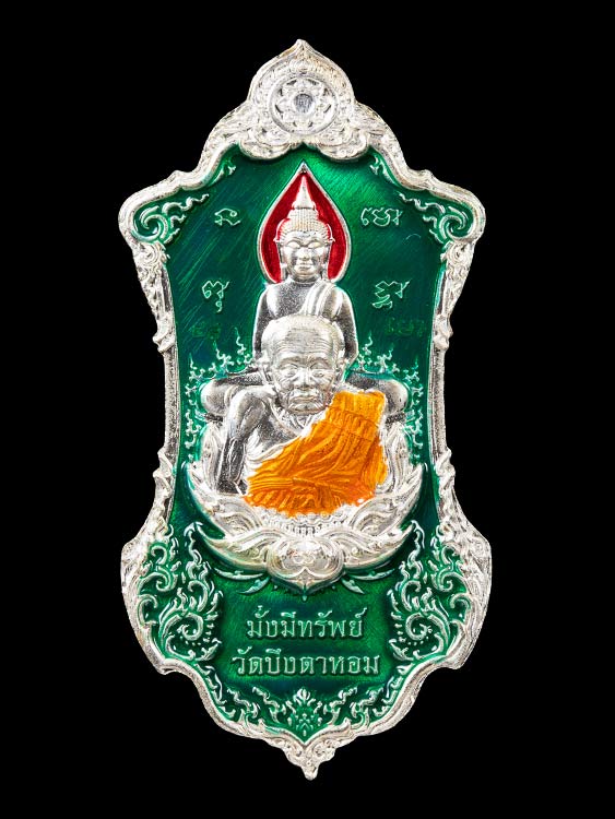 เนื้อเงินลงยาสีเขียว 2 หน้า
