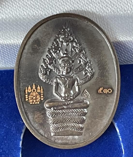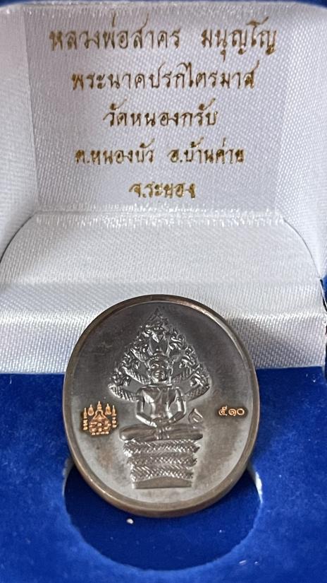 เหรียญปรกไตรมาส หลวงพ่อสาคร วัดหนองกรับ จ.ระยอง เนื้อนวะ เลข ๕๑๐ พร้อมกล่องเดิม