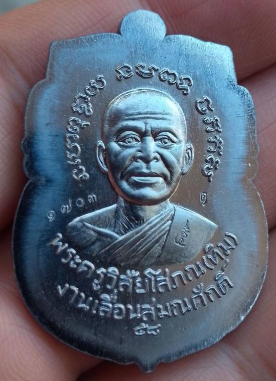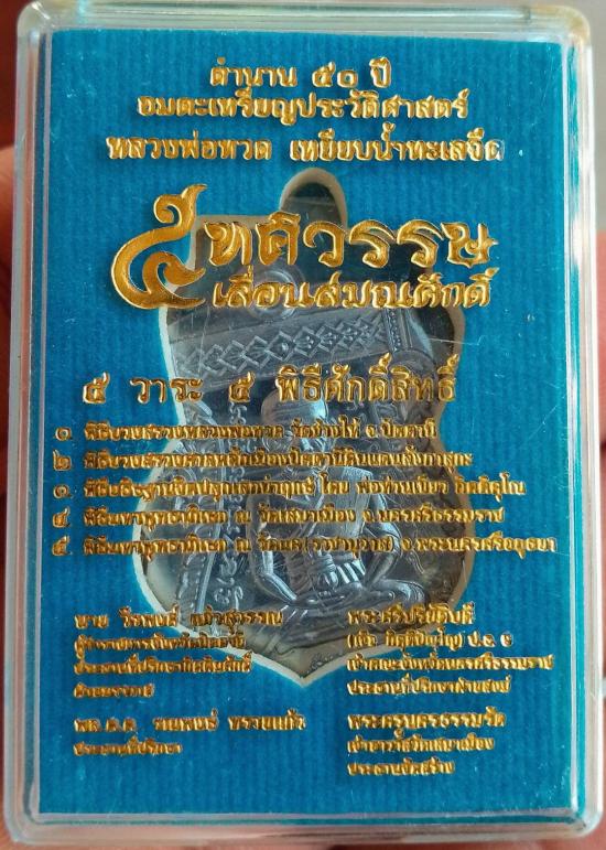 เหรียญเลื่อนสมณศักดิ์หลวงปู่ทวดปี 58 เนื้อตะกั่วไม่ตัดปีก (ชุดเนื้อเงินหน้ากากทองคำ) ตอก Number 1703 พร้อมกล่องเดิมสภาพสวย