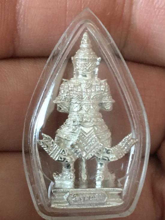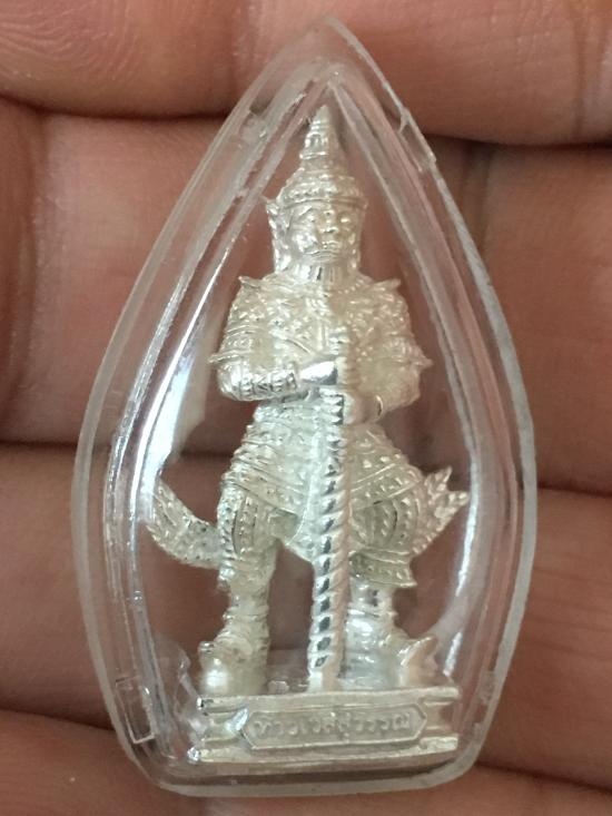 รูปหล่อองค์ท้าวเวสสุวรรณ รุ่นศรีรุ่งเรือง ลอยองค์ เนื้อเงิน ใต้ฐานมีจารหลวงพ่อ ปี 2553 วัดจุฬามณี |