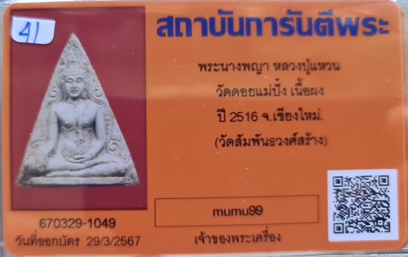 @## พระนางพญา.. ลป.แหวน วัดดอยแม่ปั๋ง จ.เชียงใหม่ (พิธีปลุกเสกใหญ่ใหญ่ วัดสัมพันธวงศ์ กทม.จัดสร้าง ) ปี2516 เนื้อผง พร้อมบัตรรับรอง สภาพสวยมาก รับประกันความแท้ตลอดชีพ พิธีปลุกเสกในวาระแรก ปี 2516 -วั |