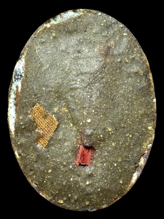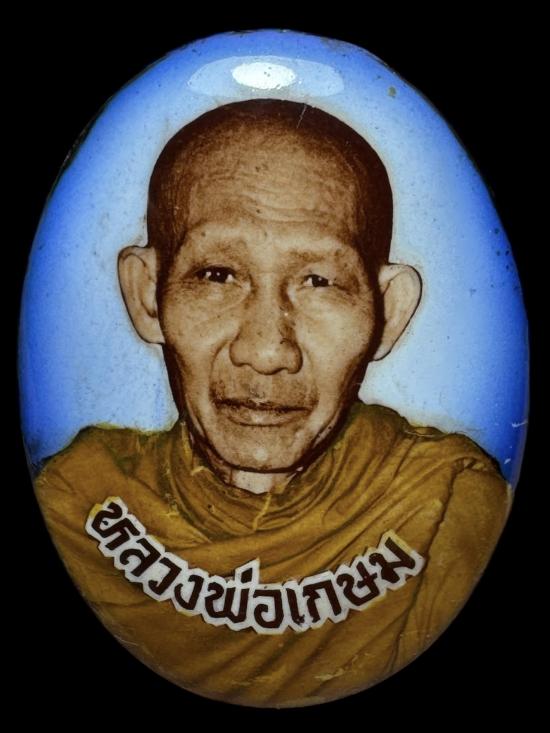 ล็อกเก็ตหลวงพ่อเกษม เขมโก ฉากฟ้า ปี 2535 ด้านหลังมีผงธูปมงคลหลวงพ่อ จีวร ก้านธูป เกศาในพิมพ์ชัดเจน รุ่นนี้สร้างหลายพิมพ์ พิมพ์นี้ขนาดพอดีสวยสมบูรณ์ |