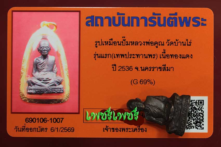 รูปเหมือนปั๊มหลวงพ่อคูณ วัดบ้านไร่ รุ่นแรก เทพประทานพร เนื้อทองแดง ปี2536 จ.นครราชสีมา สภาพสวยสวยๆ พร้อมบัตรรับรองพระแท้จากการันตีพระสบายใจได้พระแท้แน่นอน ค่ะ