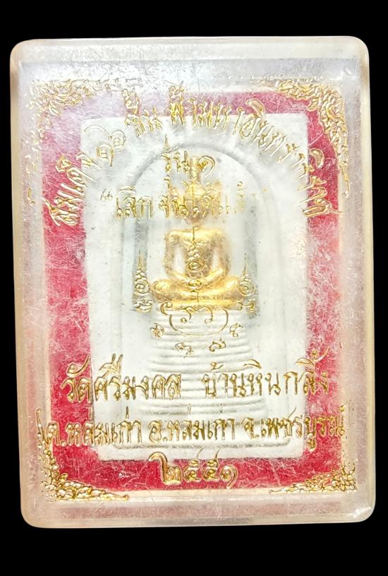 20 พระสมเด็จ 16 ชั้นฟ้า มหาอินทราธิราช รุ่น 1 วัดศรีมงคล บ้านหินกลิ้ง จัดสร้างเมื่อปี 2551เนื้อผงผสมมวลสารศักดิ์สิทธิ์ ด้านหลังฝังพลอยเสก ฝังตะกรุดเงิน 2 ดอก จ.เพชรบูรณ์ โดยพระอาจารย์พรฤทธิ์ อภินันโท |