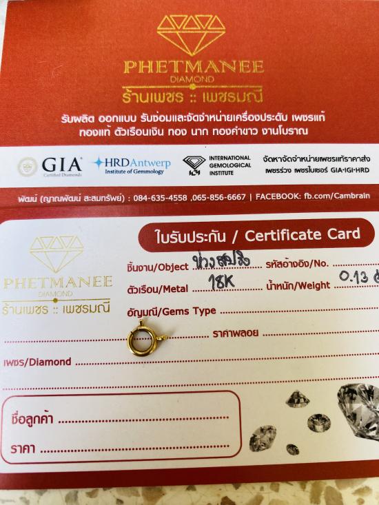 ห่วงสปริงทองแท้ 18K นน. 0.13 กรัม |