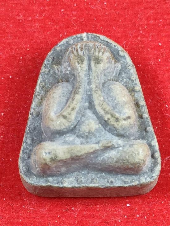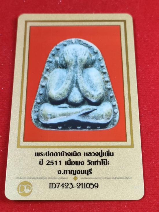 พระปิดตาหลังข้างเม็ด เนื้อผง วัดท่าโป๊ะ จ.กาญจนบุรี ปี 2511 พร้อมบัตรรับรอง