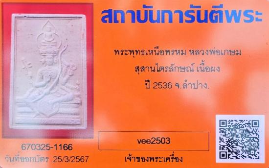 พระพุทธเหนือพรหม หลวงพ่อเกษมเขมโก ปี 2536 |