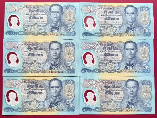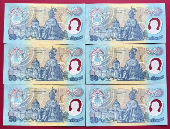 แบงค์ 50 บาท โพลิเมอร์กาญจนาภิเษก 6 ใบ สวยไม่ได้ใช้งาน |