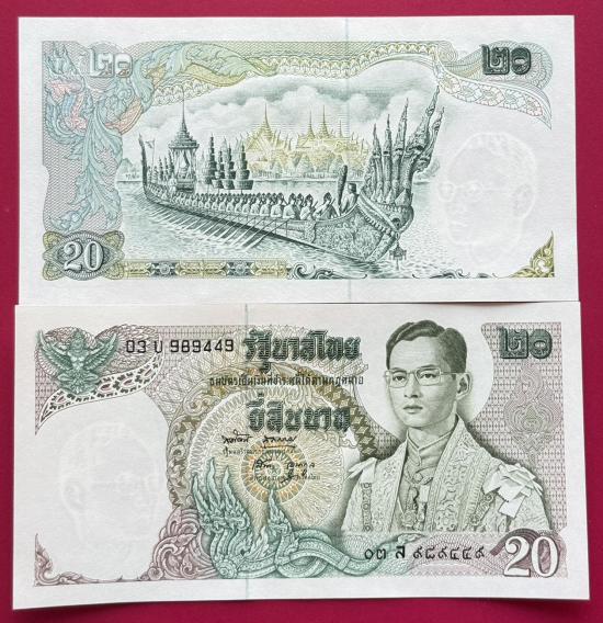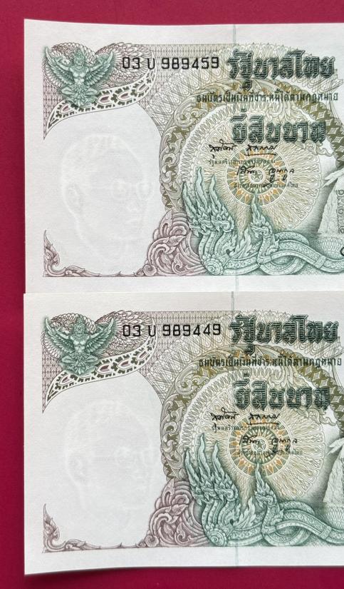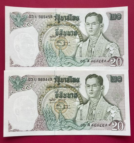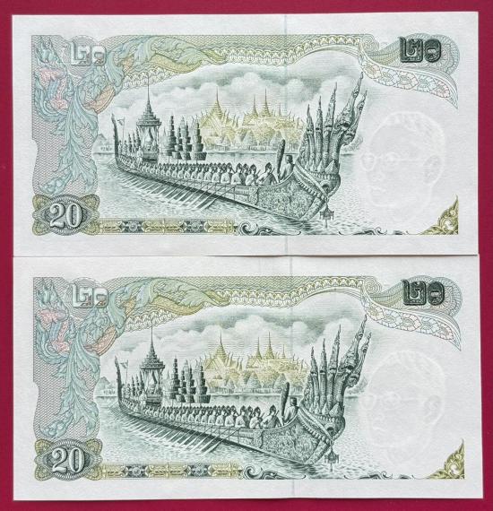 ธนบัตร 20 บาท หลังเรืออนันตนาคราช แบบ 11 จำนวน 2 ใบ สภาพสวยตามรูป |