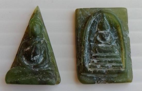 พระหยกแกะ จากส่วนหนึ่งของพระหยกใหญ่ หลวงพ่อวิริยังค์ วัดธรรมมงคล กทม. ๔ มิ.ย. ๒๕๓๖ รับจำนวน 2 องค์