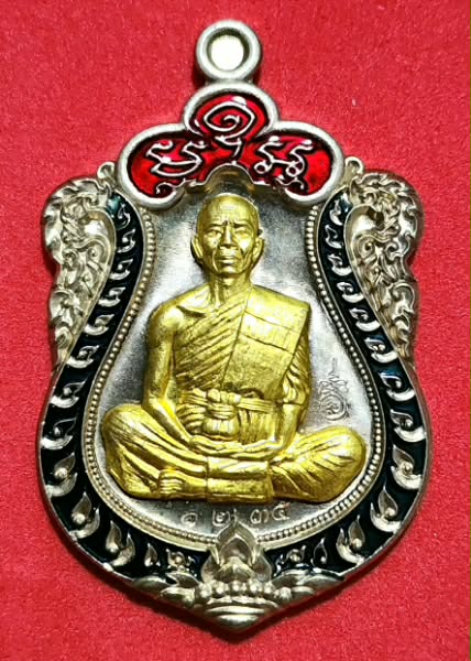 พระสวย.. เหรียญหลวงพ่อคูณ EOD เสมาเนื้ออัลปาก้าหน้ากากปลอกลูกปืนลงยา NO.1235 พร้อมกล่องเดิม