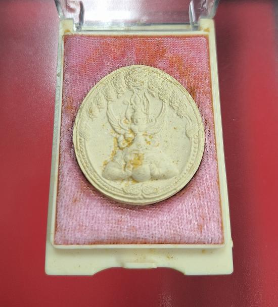 พระนารายณ์ทรงครุฑ ประทับพระราหู หลังตราดวงเมือง - เนื้อผงพุทธคุณ - เจ้าคุณธงชัย วัดไตรมิตร ปี 2549 |