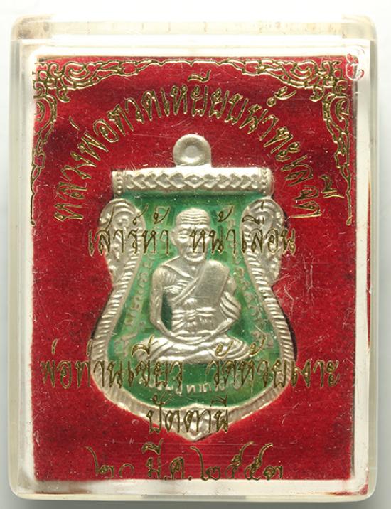 เหรียญหน้าเลื่อน พ่อท่านเขียว วัดห้วยเงาะ รุ่นเสาร์5 หน้าเลื่อน ปี53 เนื้อเงิน ลงยาสีเขียว งานวัดจัดสร้าง สร้างน้อยหายากมาก พุทธคุณเป็นที่ประจักษ์
