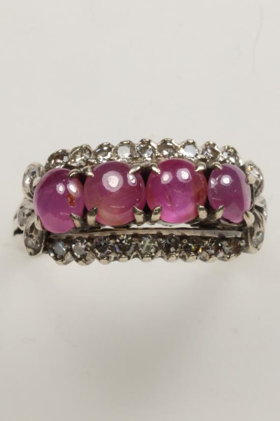 แหวนทับทิมล้อมเพชร ตัวเรือนเงิน 91% น้ำหนักรวม 5.6 กรัม