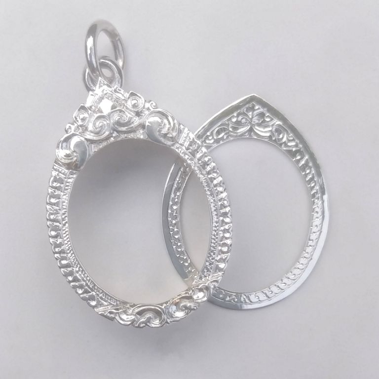 กรอบเงินแท้ 92.5% ตอกห่วง925 งานขึ้นมือยกซุ้มแกะลายฝีมือช่างชั้นครู ขนาดกว้าง1.4 สูง1.7ซม. น้ำหนัก3กรัม พิมพ์เม็ดแตง หลวปู่ทวด หลวงปู่หมุน หรือขนาดใกล้เคียง กรอบพับหลังมือ1 |