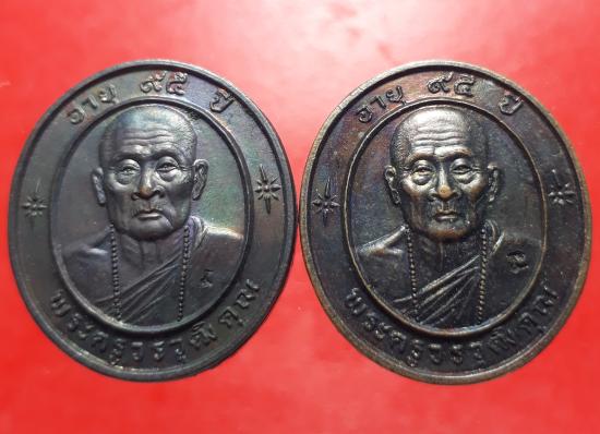 เหรียญครูบาอิน วัดฟ้าหลั่ง เชียงใหม่ ปี 2539 เนื้อทองแดง,ตอกโค๊ต 2 เหรียญ เคาะเดียวแดง