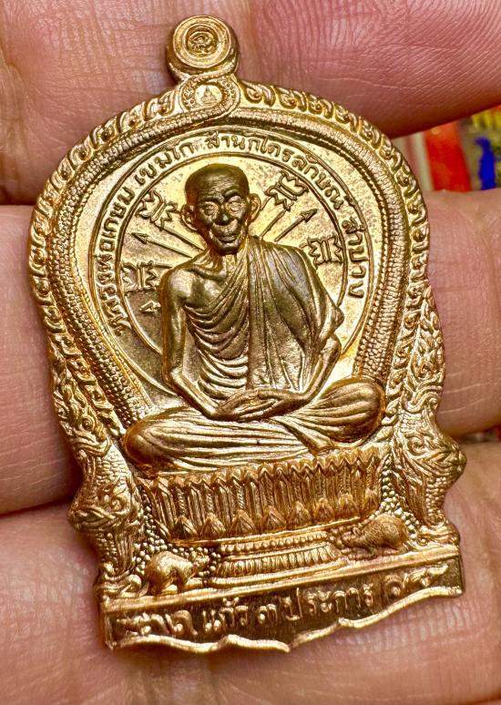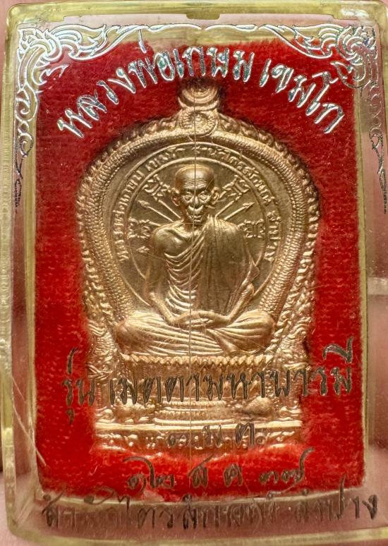 เหรียญ นั่งพาน 3 มต เมตตา มีสตางค์ ไม่ตาย หลวงพ่อเกษม เขมโก เนื้อทองแดง ปี2537 พร้อมกล่องเดิม