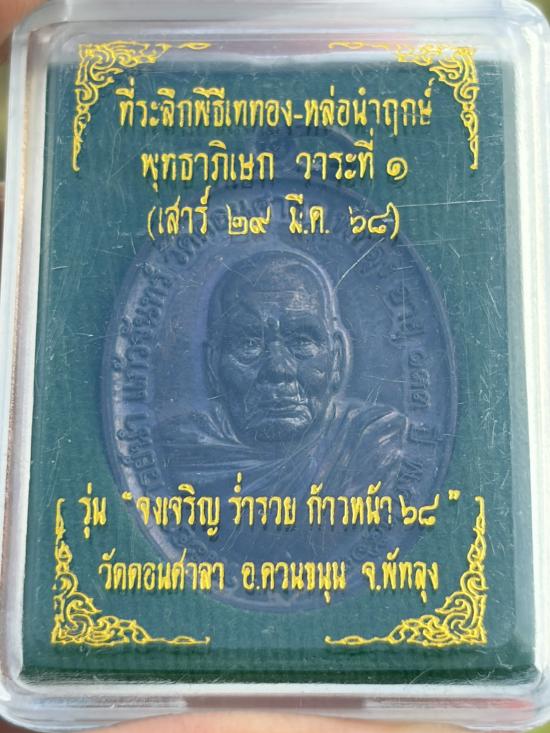 เหรียญพระอาจารย์นำ ที่ระลึกพิธีเททอง-หล่อนำฤกษ์ พุทธาภิเษก วาระที่ 1 รุ่น "จงเจริญ ร่ำรวย ก้าวหน้า 68" วัดดอนศาลา จ.พัทลุง พิมพ์ใหญ่ เนื้อทองแดงรมดำ พร้อมกล่อง เลข653 |