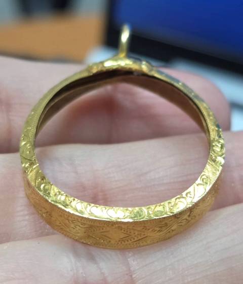 กรอบทองคำแท้ ทองมือสอง G59%น้ำหนัก 1.7กรัม ขอบกระจกขนาด กว้าง 2.3ซ.ม. สูง 2.9ซ.ม. สำหรับใส่เหรียญรูปไข่สวยๆพร้อมบัตรรับรองครับ |