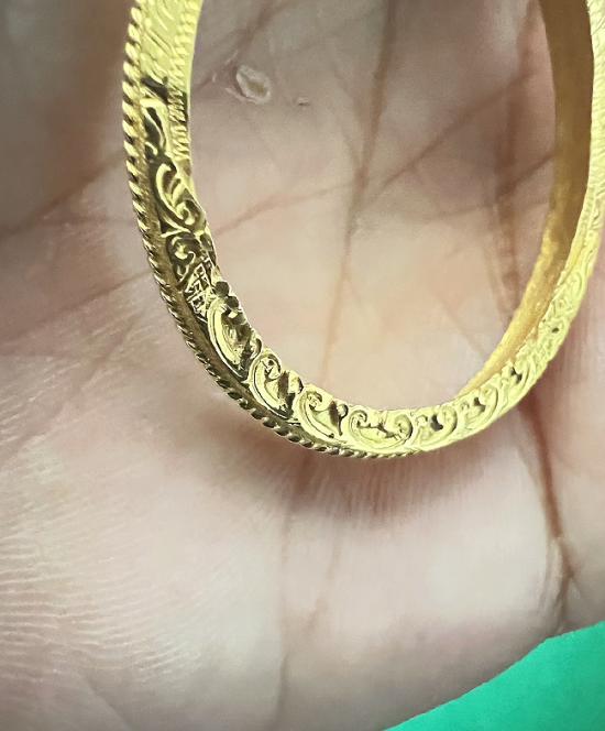 (กรอบมือ2 ทองคำแท้) เหรียญรูปไข่ น้ำหนักทอง 3.1 กรัม ทอง 58% กรอบสภาพสวยๆ ไม่บุบ ไม่ฉีก ขอบพับเรียบ ครับ |