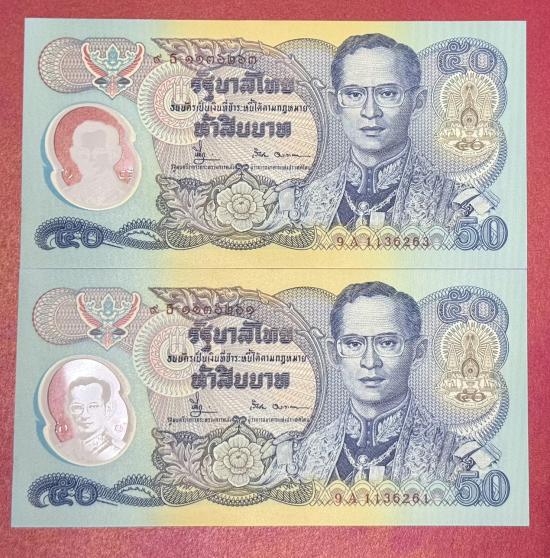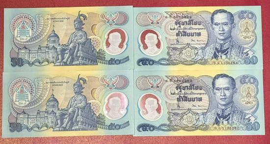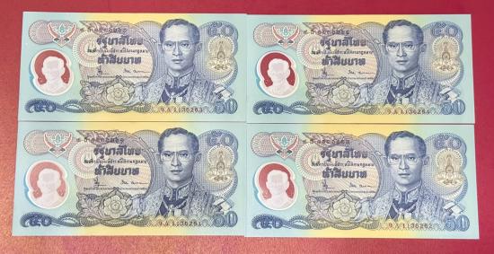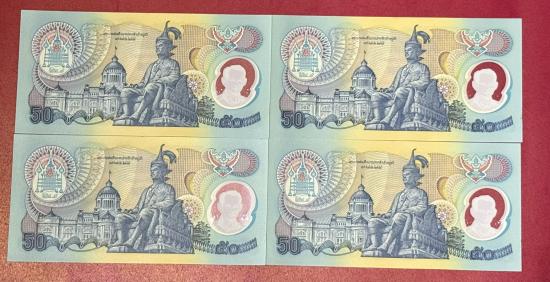 ธนบัตรที่ระลึก รัชกาลที่ 9 ฉลองสิริราชสมบัติครบ 50 ปี ราคา 50 บาท จำนวน 4 ใบ สภาพสวยตามรูป |