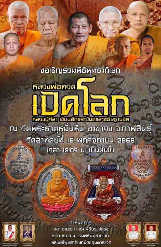 รายละเอียด เหรียญแจกทหาร หลวงปู่ทวด รุ่น เปิดโลก เนื้อทองแดงรมดำ หลวงปู่ศิลา สิริจันโท เมตตาอธิษฐานจิต ซีลเดิมลุ้นพิมพ์ (พิมพ์เสมากับรุปไข่) และเลขสวย ออกวัดพระธาตุหมื่นหิน จ.กาฬสินธุ์ ปี 2568 เป็นเหรียญแจกในพิธีและแจกทหารชายแดน โดยมีพระเกจิชื่อดังแห่งภาคอีสาน และพระเกจิคณาจารย์ร่วมพิธีปลุกเสกหลายรูป หลวงปู่ศรีจันทร์ ปญฺญรโต, หลวงปู่สุนันท์ สุภาจาโร, หลวงปู่เวิน คุเณสโก, พระอาจารย์อุดล อัคคธัมโม, พระอาจารย์อุดล อัคคธัมโม, พ่อท่านนุ้ย ภูริปญฺโญ, พระอาจารย์เอ๋ ฐานงฺกโร ฯลฯ พิธีดี พิธีใหญ่ พุทธคุณดีเด่น เมตตามหานิยม เสริมดวง โชคลาภเงินทอง ปลดหนี้-ปลดสิน แคล้วคลาดปลอดภัย