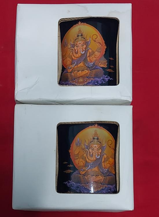 ขออนุญาติท่านอาจารย์เฉลิมชัยโฆษิตพิพัฒน์ขอแบ่งปันแก้วน้ำพ่อปู่พิฆเนศจำนวน4ใบมี2สีครับกล่องขาวโดนฝนชื้นเลยขึ้นคลาบครับแต่แก้วสวยสมบูรณ์ครับดูให้ชอบก่อนประมูลนะครับ |