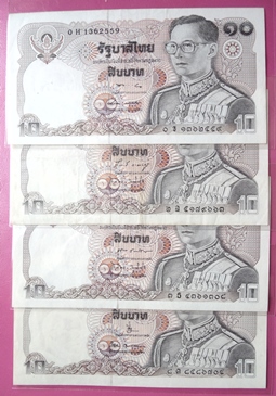 เคาะเดียว..ธนบัตรหมุนเวียน แบบที่ 12 ฉบับราคา 10 บาท.รวม 8 ฉบับ 8 ลายเซ็น สภาพใช้ มีรอยพับตามรูป |