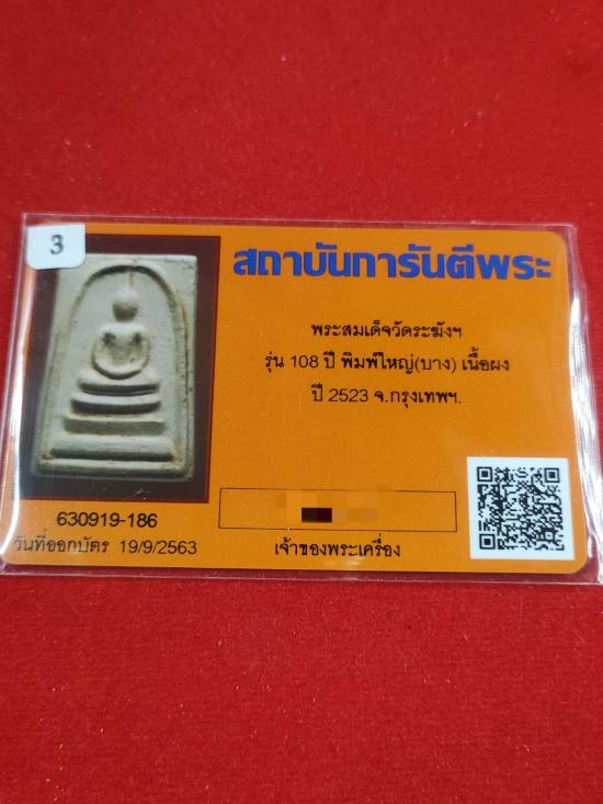 พระสมเด็จวัดระฆัง 108 ปี พิมพ์ใหญ่ (บาง) ปี2523 วัดระฆัง เนื้อผง พร้อมบัตรรับรอง @1 |