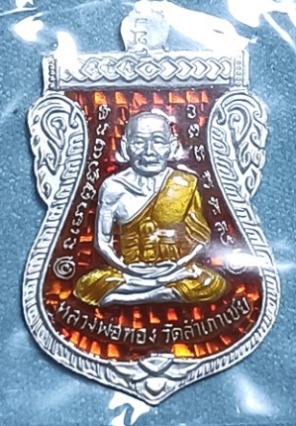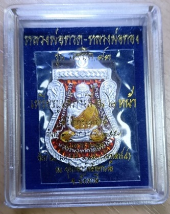 หลวงปู่ทวดอาจารย์ทอง เสมาหน้าเลื่อน เนื้อเงินลงยาแดง แซยิด93 สวยๆ กล่องเดิม ซีลเดิม