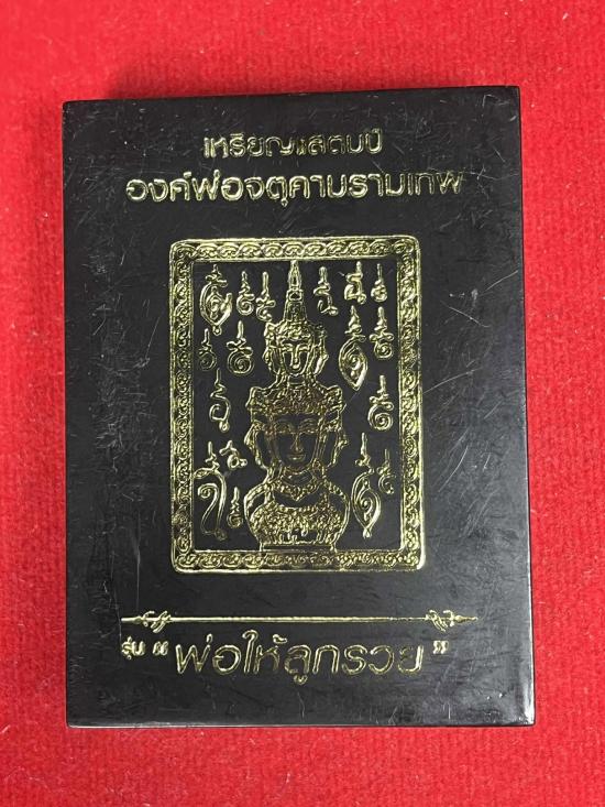 เหรียญเเสตมป์ องค์พ่อจตุคามรามเทพ พ่อให้ลูกรวย หลวงพ่อประสูติ พระอาจารย์ต้อม หลวงปู่อิ่ม พระอาจารย์เด่นดวง หลวงพี่เลี้ยง ปลุกเสก |