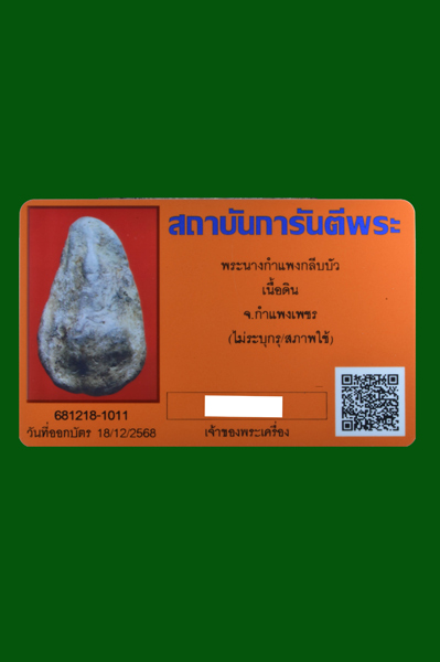 พระนางกำแพงกลีบบัว จ.กำแพงเพชร+พร้อมบัตรรับรองครับ