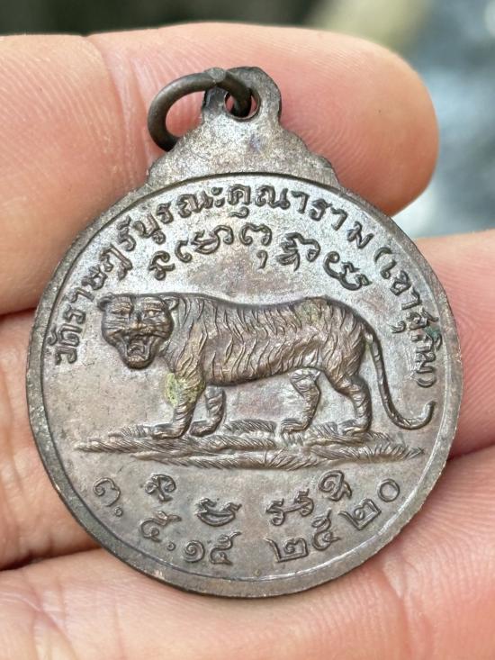 เหรียญเสือยืน เนื้อทองแดง ปี 2520 หลวงพ่อสมชาย วัดเขาสุกิม จ.จันทบุรี