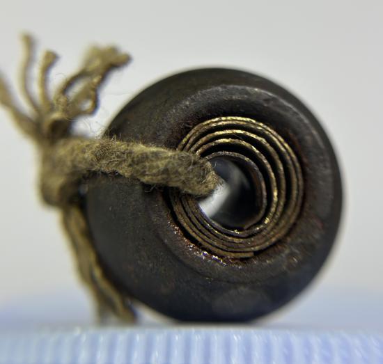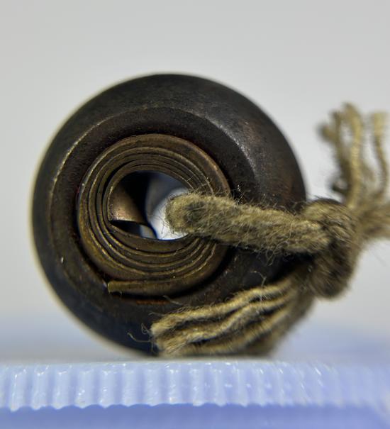 ตะกรุดลูกอมเก่า ผูกเชือก มีรอยจาร ไม่ทราบที่ |