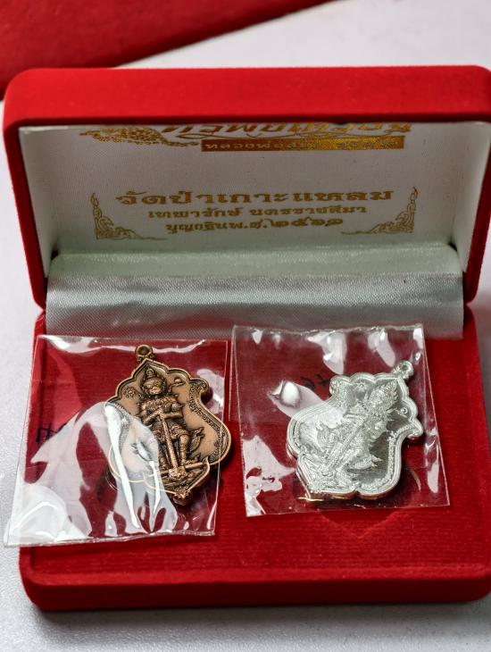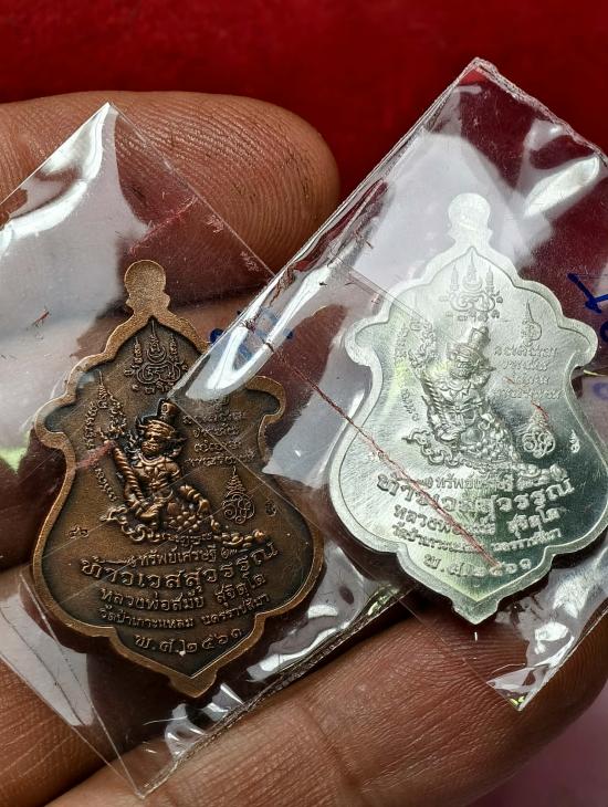 50.-/// เหรียญท้าวเวสสุวรรณ เนื้อเงิน และเนื้อซาติน ชุดกรรมการ หลวงพ่อสมัย วัดป่าเกาะแหลม นครราชสีมา เลข 46 พร้อมกล่อง