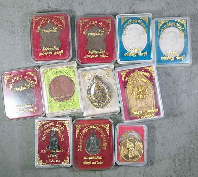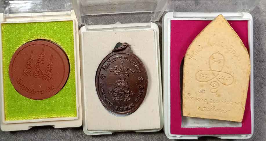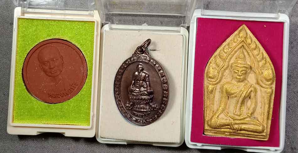 พระผง แร่เหล็กน้ำพี้ หลวงพ่อจู คเวสโก วัดสังกะเปรียว อ.บางละมุง จ.ชลบุรี 3 องค์