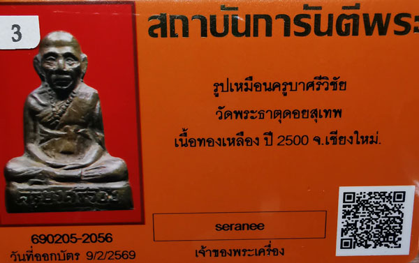 รูปเหมือนครูบาศรีวิชัย วัดพระธาตุดอยสุเทพ เนื้อทองเหลือง ปี2500 จ.เชียงใหม่ + บัตร G-pra สภาพเดิมค่ะ |