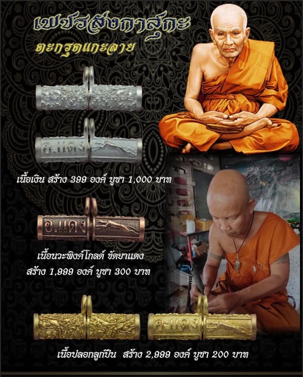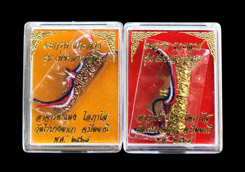 +!!เคาะเดียวllดง ตลอดสาย!!+ (รับ 2 อัน) ตะกรุด แกะลาย รุ่นแรก พระอาจารย์แดง วัดไร่บางตาวา จ.ปัตตานี รุ่นเพชรลังกาสุกะ (เนื้อนวะพิงค์โกลด์ ขัดยาแดง+ปลอกลูกปืน) พร้อมกล่องครับ |