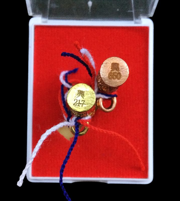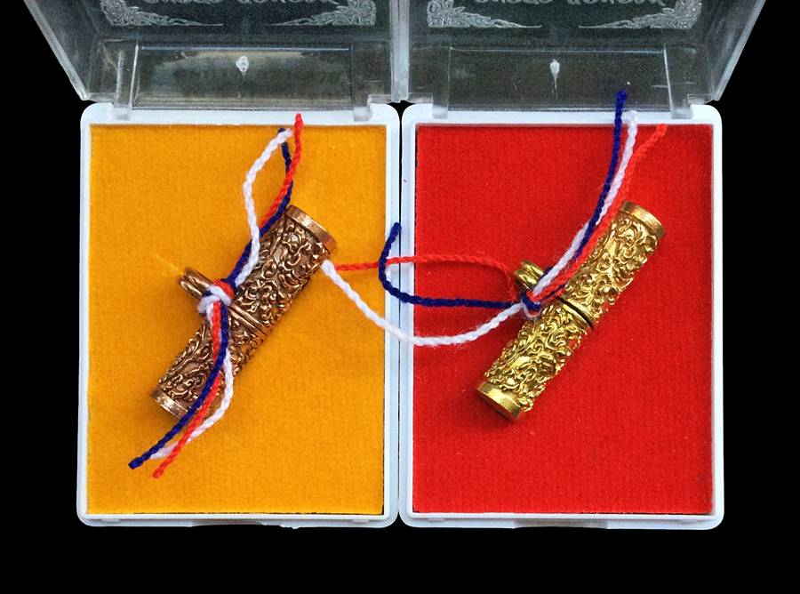 +!!เคาะเดียวllดง ตลอดสาย!!+ (รับ 2 อัน) ตะกรุด แกะลาย รุ่นแรก พระอาจารย์แดง วัดไร่บางตาวา จ.ปัตตานี รุ่นเพชรลังกาสุกะ (เนื้อนวะพิงค์โกลด์ ขัดยาแดง+ปลอกลูกปืน) พร้อมกล่องครับ