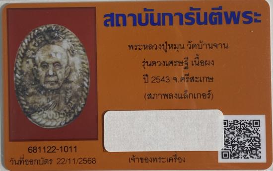 พระผงดวงเศรษฐี หลวงปู่หมุน ปี2543 สวยเดิม + บัตรรับรอง G-Pra