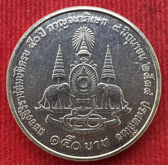 เหรียญกาญจนาภิเษกในหลวง ร. 9 ปี 2539 เนื้อเงิน ราคาหน้าเหรียญ 150 บาท