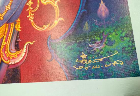 ภาพพิมพ์กระดาษพระแม่โพสพพร้อมลายเซ็นสดขนาด 69*99 ซม มีคราบบางๆที่ขอบกระดาษ |