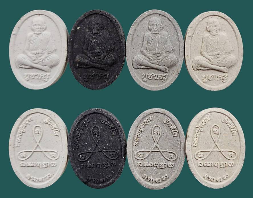 พระผงบูชาครู รุ่น รวยทันใจ หลวงปู่หมุน ฐิตสีโล อธิฐานจิตเดี่ยวโดย หลวงปู่ทองคำ สุวโจ สภาพสวย 4 องค์ 4 เนื้อ ครับ |