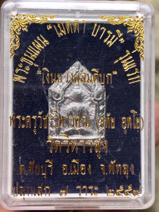 พระขุนแผน เมตตา บารมี รุ่นแรก เนื้อเงินยวงผสมดีบุก พระครูวัชรวิหารคุณ (อ.อุทัย อุทโย) วัดวิหารสูง จ.พัทลุง หมายเลข 16 (สร้างปี 2559 จำนวน 500 องค์) |