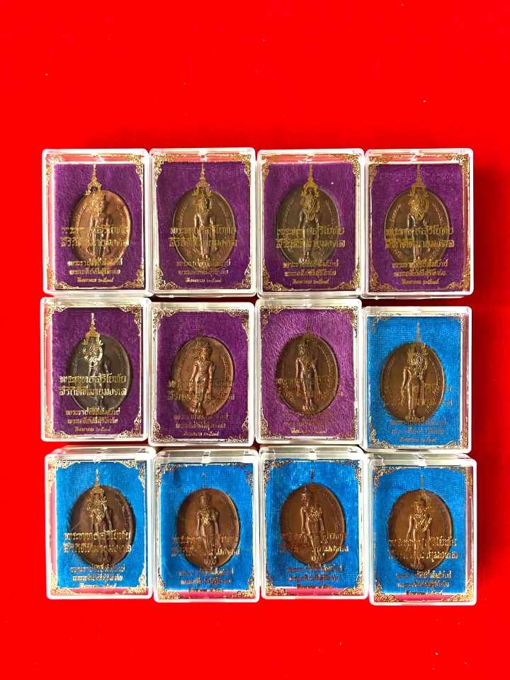 12 องค์ เหรียญพระพุทธสุริโยทัยสิริกิตทีฆายุมงคล พิธีสมโภชพระเจดีย์ศรีสุริโยทัย จังหวัดอยุธยา ปี 2534 เนื้อนวะ 7 องค์ + เนื้อทองแดง 5 องค์ กล่องเดิม |