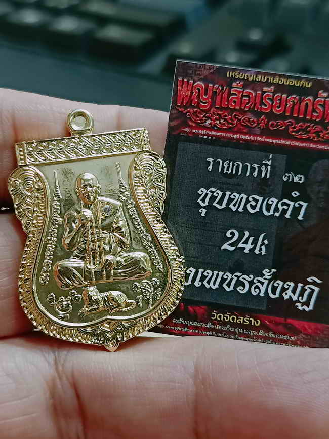 วัดใจ 100 เหรียญเสมาพญาเสือนอนกิน พญาเสือเรียกทรัพย์ หลวงพ่อประสูติปิยธัมโม วัดถ้ำพระพุทธโกษีย์(วัดในเตา) จ.ตรัง 2568 ชุบทองคำ 24K ฝังเพชร หมายเลข 2 กล่องเดิม |