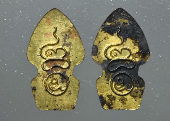เหรียญปรกใบมะขามหลวงพ่อเพชรรุ่นแรก วัดเจดีย์ (ไอ้ไข่เด็กวัดเจดีย์) ต.ฉลอง อ.สิชล จ.นครศรีธรรมราช รุ่นรับทรัพย์ ปี ๕๖ ที่ระฤกหล่อพระประธานหลวงพ่อเพชร อุโบสถวัดเจดีย์ เนื้อฝาบาตร (เนื้อเดียวกับพระประธานในโบสถ์) ด้านหลังเป็นพระยันต์เฑาะว์ขัดสมาธิเพชรหรือเฑาะว์มหาพรหม ส่วนด้านล่าง ยันต์ เอ เอวีสะติ ถอดมาจากอิติโสรัตนมาลา เป็นอักขระตัว เอ |